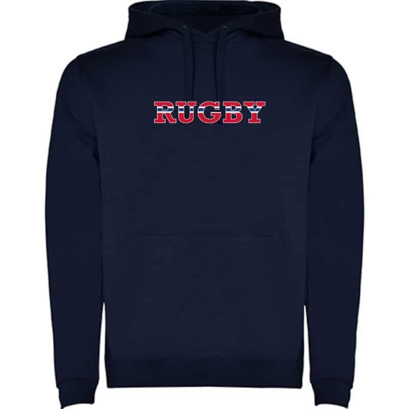 Hettegenser i meget mykt, behagelig og slitesterkt materiale med 35% bomull og 65% polyester. Nyt kalde og dager i kvelder i denne varme hettegenseren. RUGBY i det norske flaggets farger trykket på brystet.