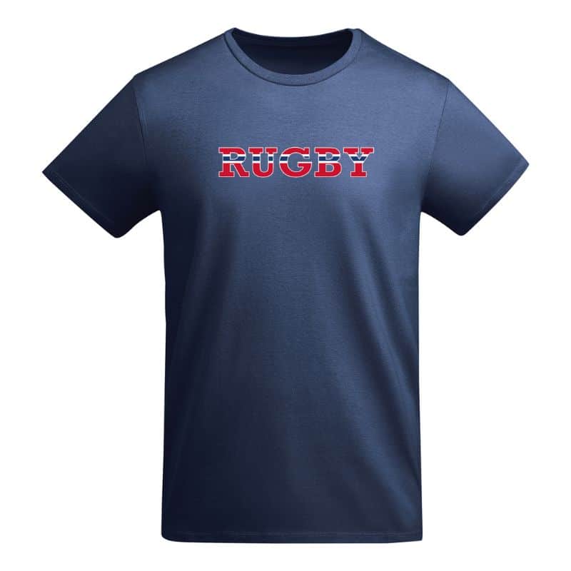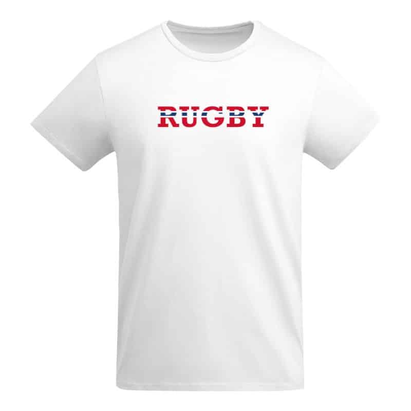 Behagelig unisex t-skjorte uten sidesømmer i 100 % OCS sertifisert organisk bomull. Trykket med RUGBY i det norske flaggets farger på brystet.